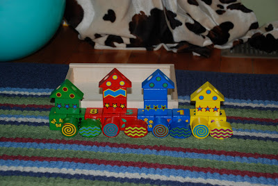 I've noticed lately that Aidan's imagination is just soaring, it's becoming much more vivid. He tells stories about ojects he sees with great detail now, all from his imagination. We were at a friends house who had a doll house and he went into this elaborate story about the mailman trying to deliver mail to the doll house and how the little girl there was sad about her mail. We were all kind of amazed about the detail he came up with. He's also fascinated with the moon and has told me lots of stories that include the moon. He's told stories for a quite a while now but in the past they were much more concrete. He's also now playing with objects and creating other objects out of them like the train he made out of his beads, or the moon that he makes with his sandwich. I'm just so pleased to see the creativity that comes out of his imagination. I think he's pretty pleased with himself too. I can't wait to till he can start really drawing, I'm anxious to see what his drawing ability will be. His 4th birthday is just around the corner and we still aren't sure whether he's left or right handed. He seems to go back and forth often. In the meantime I'll just enjoy his fun little stories.